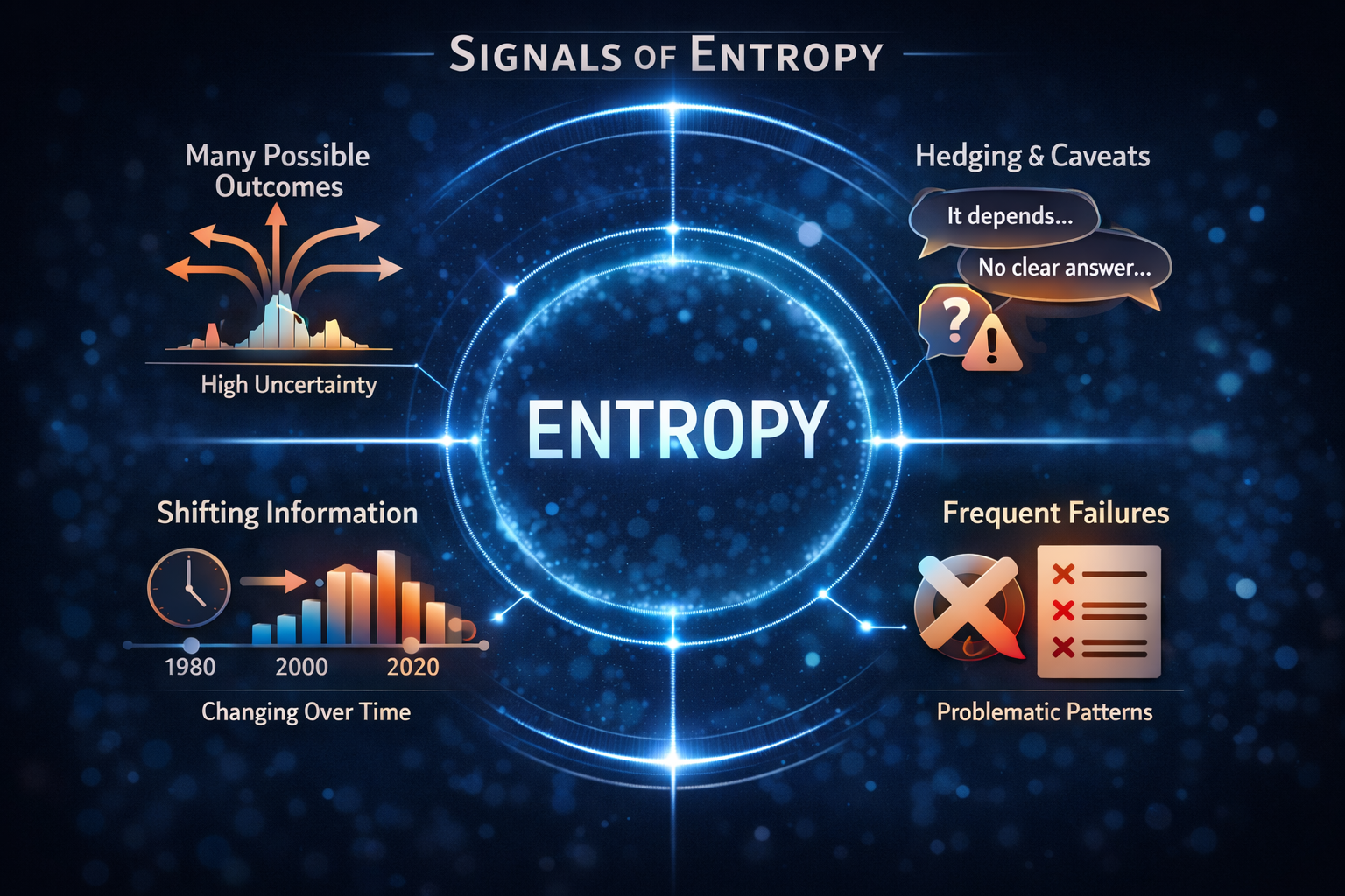Some domains remain stable across decades, while others — leadership roles, policies, pricing, ownership — change frequently. Temporal inconsistency in training data introduces entropy before an answer is ever produced.