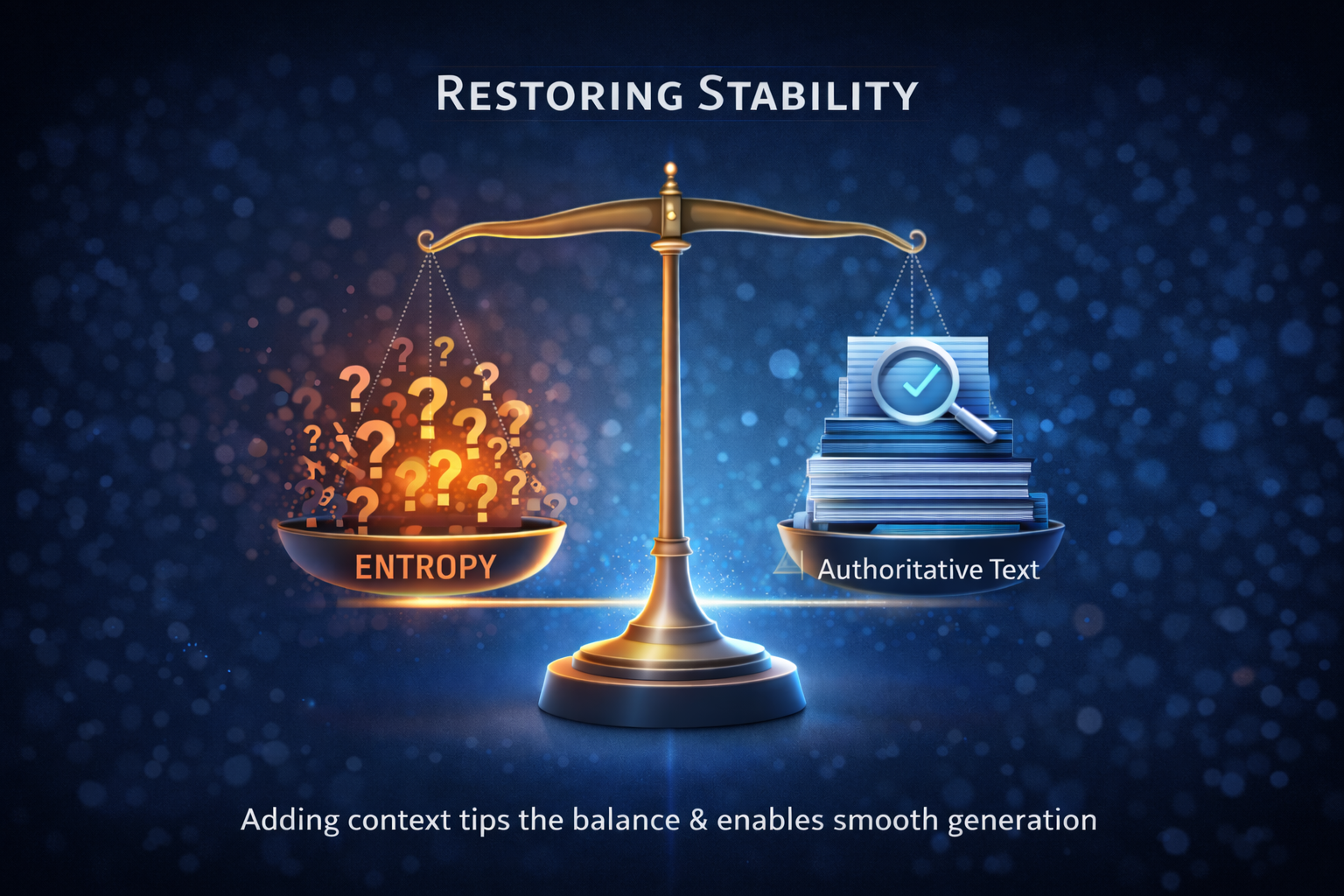 Injecting authoritative text collapses competing continuations, reduces entropy, and allows generation to proceed smoothly [6]. Lookup is triggered when continuing without additional context would destabilize language flow.